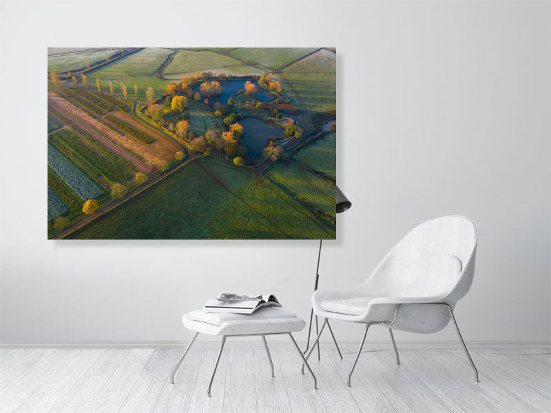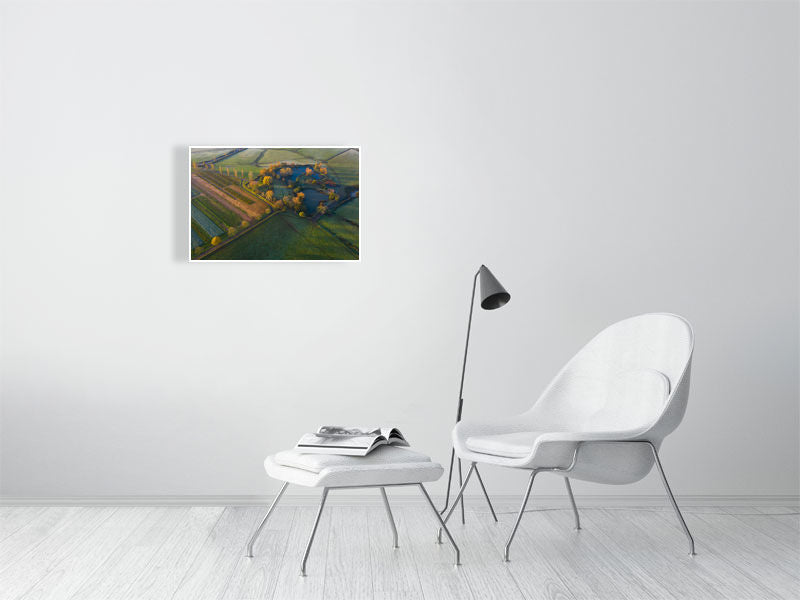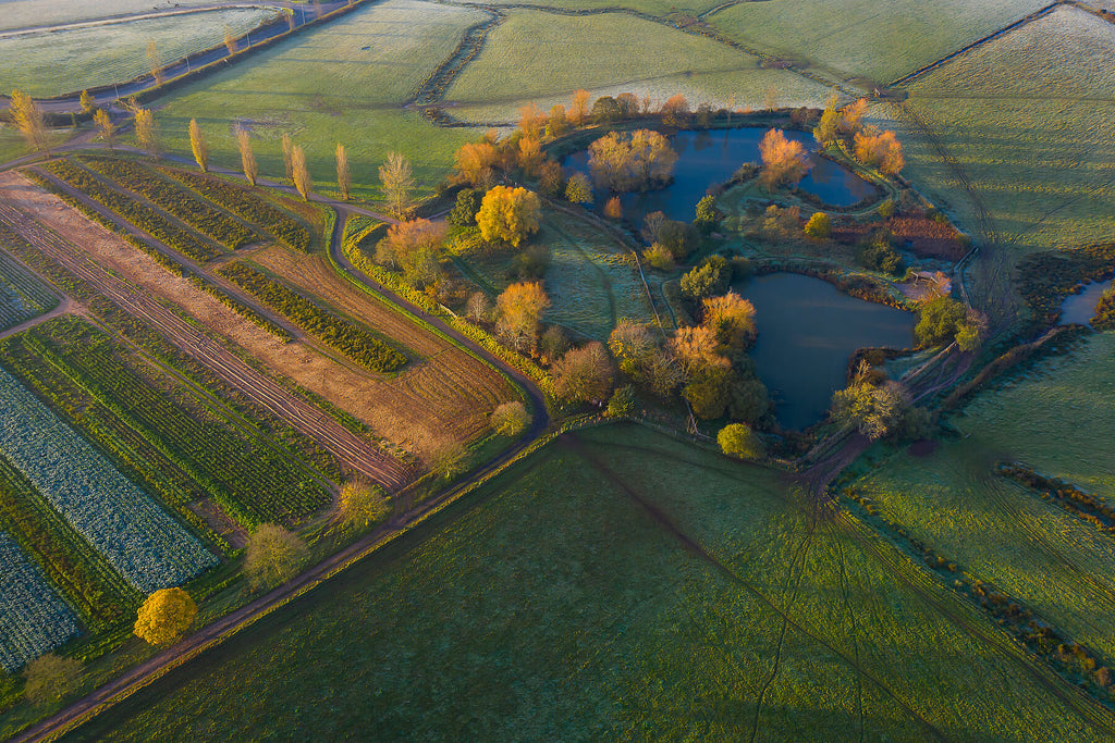 Sunlight kisses the late autumnal trees making them glow golden colour.