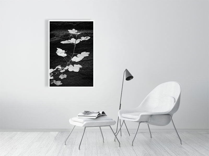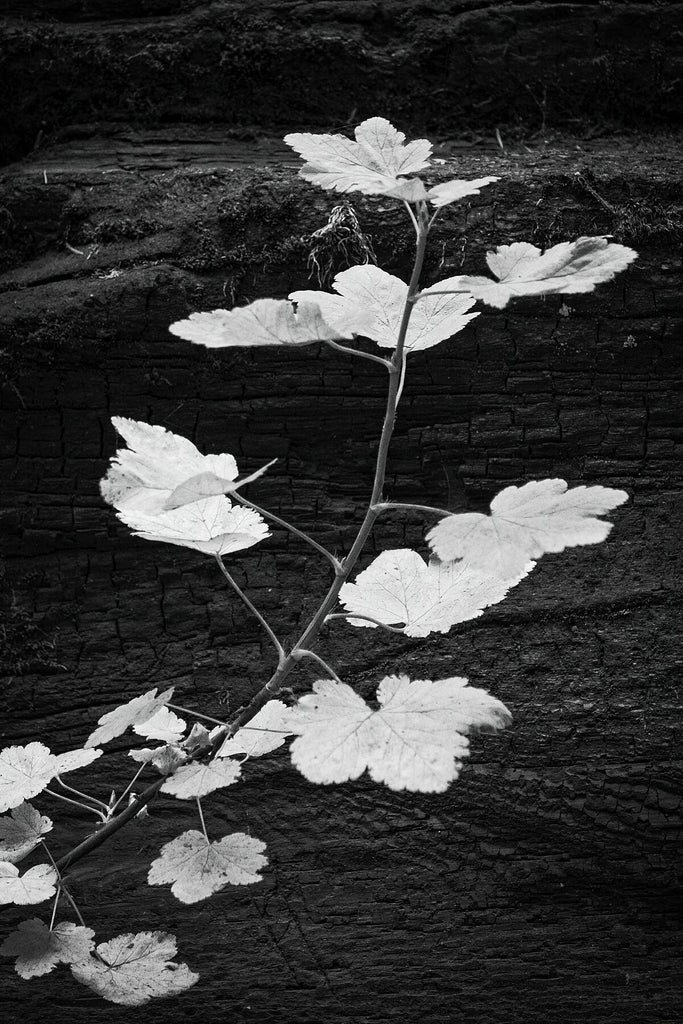 Dappled sunlight crept through the canopy to illuminate this young branch on its journey skyward.
