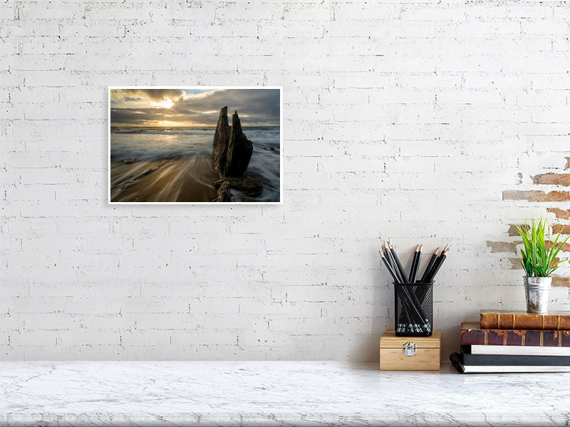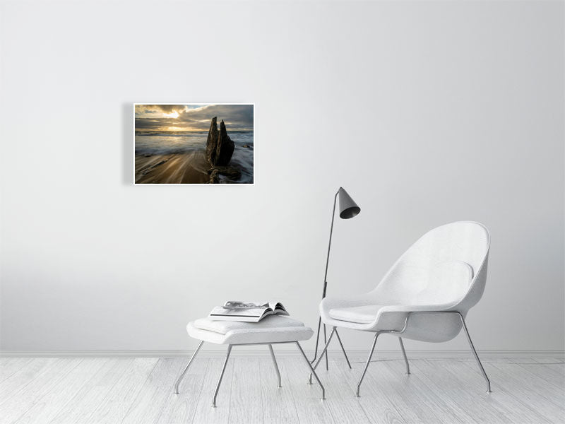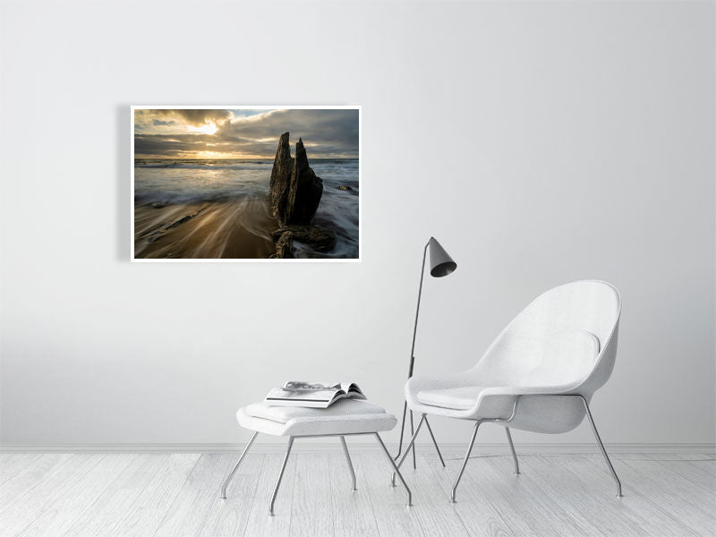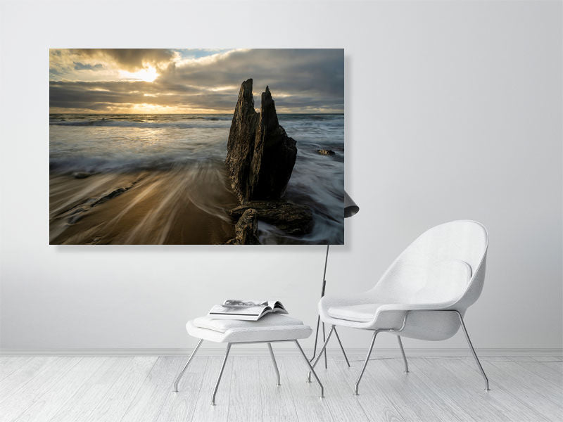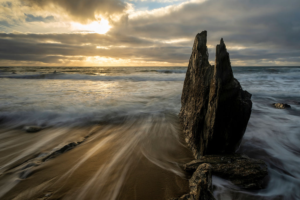 This lone piece of granite stands imperiously against the relentless crashing of the waves making for a dramatic scene as the sun goes down.